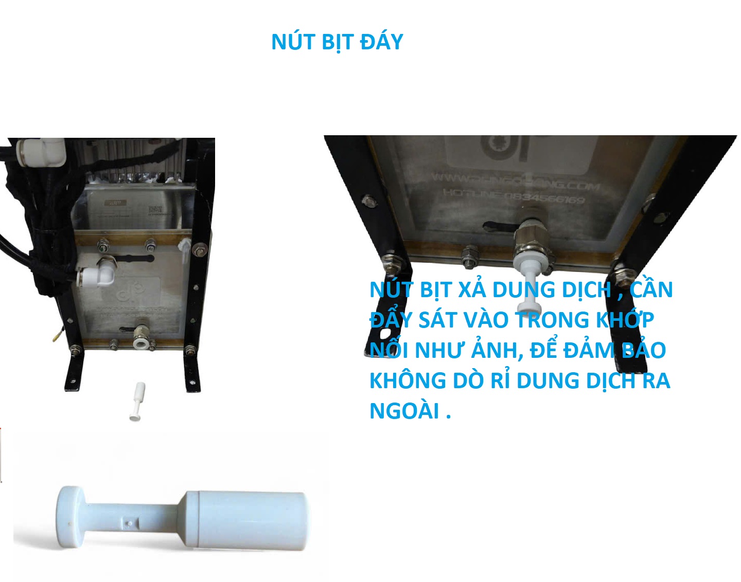 LƯU Ý : KHI CHÂM NƯỚC QUA ỐNG CẦN PHẢI BÓP VÀNH NÚT, ĐỂ RÚT NẮP BỊT 12 RA , KHI CHÂM NƯỚC CẦN CẨN THẬN, TRÁNH ĐỂ DUNG DỊCH DÍNH VÀO TAY ,HOẶC VĂNG VÀO MẮT . NẾU DUNG DỊCH DÍNH VÀO TAY HOĂC VĂNG VÀO MẮT CẦN RỬA LẠI VỚI NHIỀU NƯỚC . NẾU DUNG DỊCH ĐỔ RA BÊN NGOÀI CẦN RỬA LẠI VỚI NHIỀU NƯỚC .